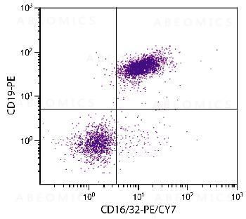Figure 1: BALB/c mouse splenocytes were stained with Rat Anti-Mouse CD16/32-PE/CY7 and Rat Anti-Mouse CD19-PE .