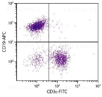 Figure 1: BALB/c mouse splenocytes were stained with Rat Anti-Mouse CD19-APC and Rat Anti-Mouse CD3ε-FITC .