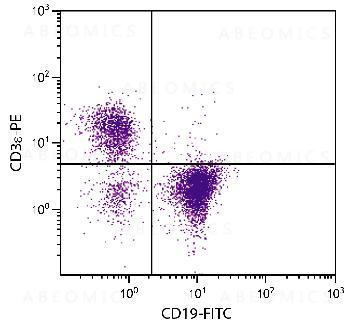 Figure 1: BALB/c mouse splenocytes were stained with Rat Anti-Mouse CD19-FITC and Rat Anti-Mouse CD3ε-PE .