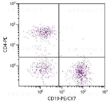 Figure 1: C57BL/6 mouse splenocytes were stained with Rat Anti-Mouse CD19-PE/CY7 and Rat Anti-Mouse CD4-PE .