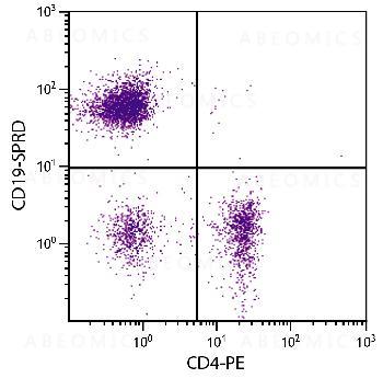 Figure 1: C57BL/6 mouse splenocytes were stained with Rat Anti-Mouse CD19-SPRD and Rat Anti-Mouse CD4-PE .
