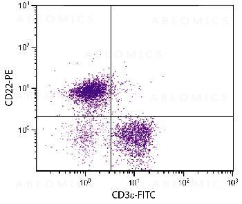 Figure 1: BALB/c mouse splenocytes were stained with Rat Anti-Mouse CD22-PE and Rat Anti-Mouse CD3e-FITC .