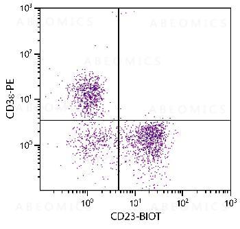 Figure 1: BALB/c mouse splenocytes were stained with Rat Anti-Mouse CD23-Biotin and Rat Anti-Mouse CD3e-PE followed by Streptavidin-FITC .