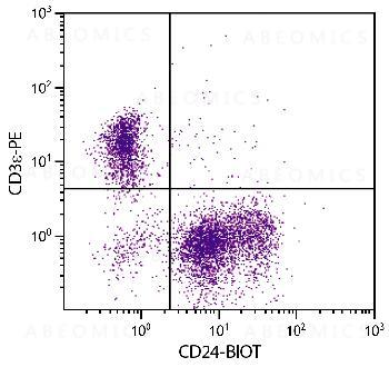 Figure 1: C57BL/6 mouse splenocytes were stained with Rat Anti-Mouse CD24-Biotin and Rat Anti-Mouse CD3e-PE followed by Streptavidin-FITC .