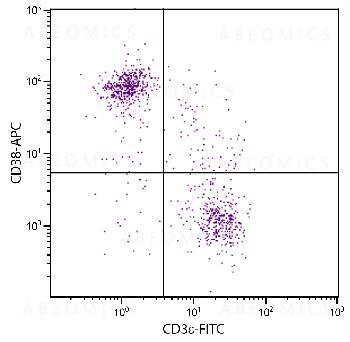 Figure 1: SJL mouse splenocytes were stained with Rat Anti-Mouse CD38-APC and Rat Anti-Mouse CD3ε-FITC .