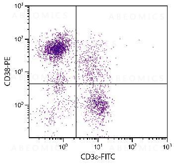 Figure 1: BALB/c mouse splenocytes were stained with Rat Anti-Mouse CD38-PE and Rat Anti-Mouse CD3ε-FITC .