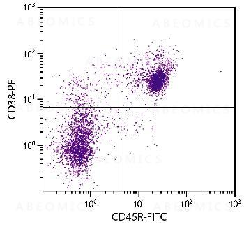 Figure 1: BALB/c mouse splenocytes were stained with Rat Anti-Mouse CD38-PE and Rat Anti-Mouse CD45R-FITC .