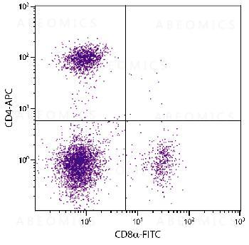 Figure 1: BALB/c mouse splenocytes were stained with Rat Anti-Mouse CD4-APC and Rat Anti-Mouse CD8α-FITC .