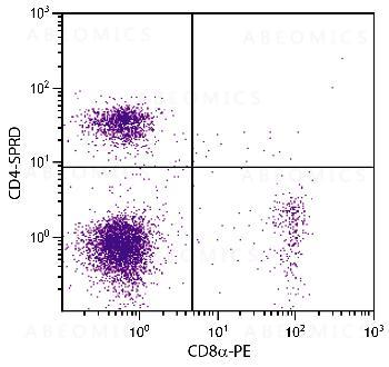 Figure 1: BALB/c mouse splenocytes were stained with Rat Anti-Mouse CD4-SPRD and Rat Anti-Mouse CD8α-PE .