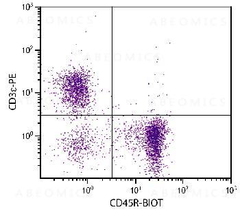 Figure 1: BALB/c mouse splenocytes were stained with Rat Anti-Mouse CD45R-Biotin and Rat Anti-Mouse CD3ε-PE followed by Streptavidin-FITC .
