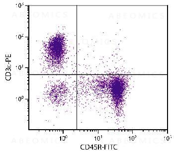 Figure 1: BALB/c mouse splenocytes were stained with Rat Anti-Mouse CD45R-FITC and Rat Anti-Mouse CD3ε-PE .