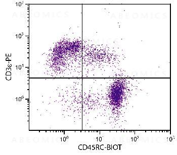 Figure 1: BALB/c mouse splenocytes were stained with Rat Anti-Mouse CD45RC-Biotin and Rat Anti-Mouse CD3ε-PE followed by Streptavidin-FITC .