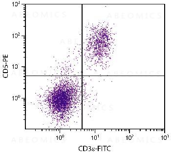 Figure 1: C57BL/6 mouse splenocytes were stained with Rat Anti-Mouse CD5-PE and Rat Anti-Mouse CD3e-FITC .