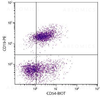 Figure 1: BALB/c mouse splenocytes were stained with Rat Anti-Mouse CD54-Biotin and Rat Anti-Mouse CD19-PE followed by Streptavidin-FITC .