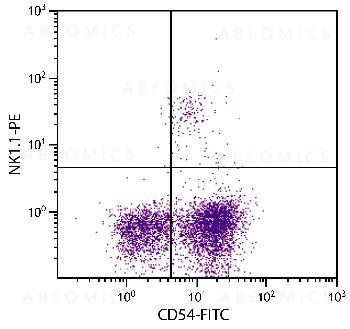Figure 1: C57BL/6 mouse splenocytes were stained with Rat Anti-Mouse CD54-FITC and Rat Anti-Mouse NK1.1-PE .