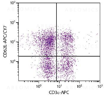 Figure 1: BALB/c mouse splenocytes were stained with Rat Anti-Mouse CD62L-APC/CY7 and Rat Anti-Mouse CD3ε-APC .