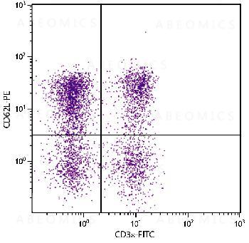 Figure 1: BALB/c mouse splenocytes were stained with Rat Anti-Mouse CD62L-PE and Rat Anti-Mouse CD3ε-FITC .