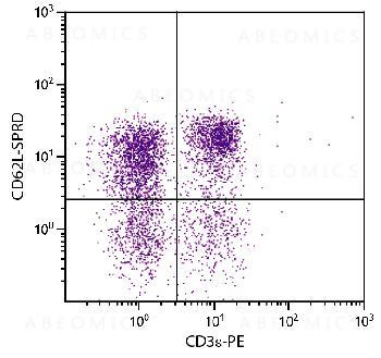 Figure 1: BALB/c mouse splenocytes were stained with Rat Anti-Mouse CD62L-SPRD and Rat Anti-Mouse CD3ε-PE .