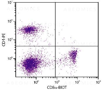 Figure 1: C57BL/6 mouse splenocytes were stained with Rat Anti-Mouse CD8a-Biotin and Rat Anti-Mouse CD4-PE followed by Streptavidin-FITC .