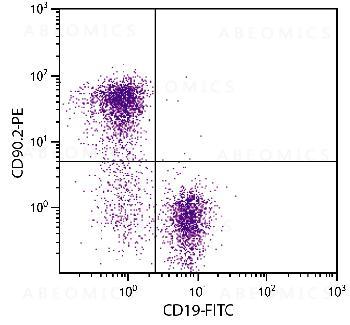 Figure 1: BALB/c mouse splenocytes were stained with Rat Anti-Mouse CD90.2-PE and Rat Anti-Mouse CD19-FITC .