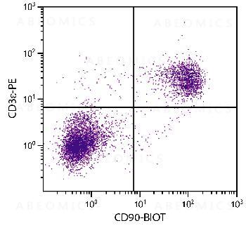 Figure 1: BALB/c mouse splenocytes were stained with Rat Anti-Mouse CD90-Biotin and Rat Anti-Mouse CD3ε-PE followed by Streptavidin-FITC .