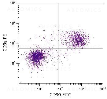 Figure 1: BALB/c mouse splenocytes were stained with Rat Anti-Mouse CD90-FITC and Rat Anti-Mouse CD3ε-PE .