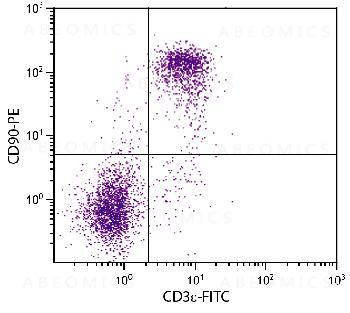 Figure 1: BALB/c mouse splenocytes were stained with Rat Anti-Mouse CD90-PE and Rat Anti-Mouse CD3ε-FITC .