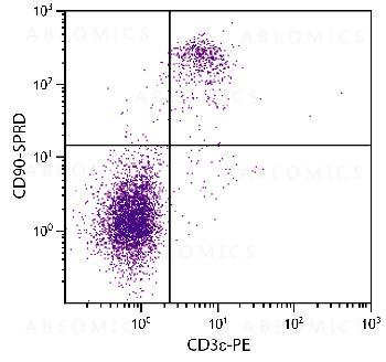 Figure 1: C57BL/6 mouse splenocytes were stained with Rat Anti-Mouse CD90-SPRD and Rat Anti-Mouse CD3ε-PE .