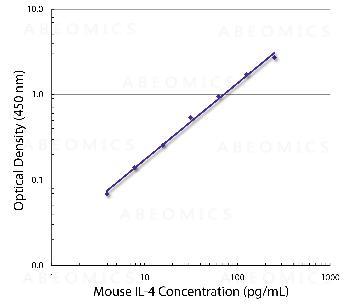 Figure 1: Standard curve generated with Rat Anti-Mouse IL-4 and Rat Anti-Mouse IL-4-Biotin followed by Mouse Anti-Biotin-HRP