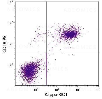 Figure 1: BALB/c mouse splenocytes were stained with Rat Anti-Mouse Kappa-Biotin and Rat Anti-Mouse CD19-PE followed by Streptavidin-FITC .