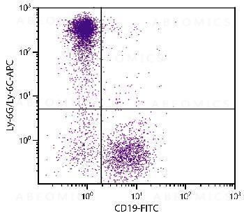 Figure 1: BALB/c mouse bone marrow cells were stained with Rat Anti-Mouse Ly-6G/Ly-6C-APC and Rat Anti-Mouse CD19-FITC .