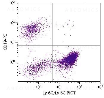 Figure 1: BALB/c mouse bone marrow cells were stained with Rat Anti-Mouse Ly-6G/Ly-6C-Biotin and Rat Anti-Mouse CD19-PE followed by Streptavidin-FITC .