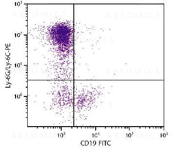 Figure 1: C57BL/6 mouse bone marrow cells were stained with Rat Anti-Mouse Ly-6G/Ly-6C-PE and Rat Anti-Mouse CD19-FITC .