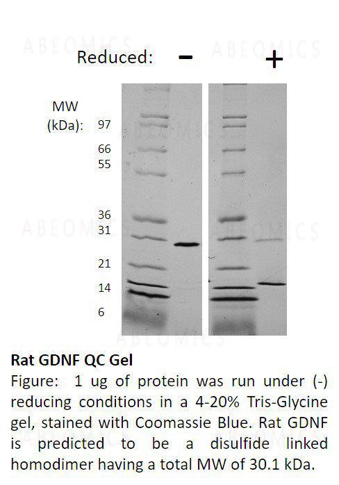 Glial cell-derived neurotrophic factor (GDNF) is a neurotrophic factor that signals through a multicomponent receptor system to activate receptor tyrosine kinase RET signaling. GDNF promotes dopamine uptake, prevents motor neuron apoptosis, and supports the survival and differentiation of neurons.
