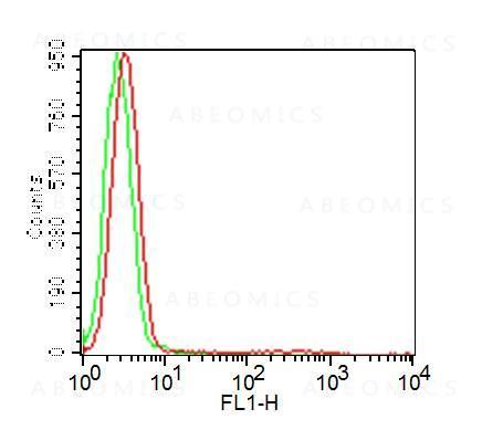 Fig: 1 Cell surface flow analysis of FITC-conjugated Rat IgG1 isotype control in Ramos cell line using 0.5 µg/10^6 cells (Clone: HRPN). Green represents cell only; red represents Rat IgG1 isotype control conjugated with FITC.