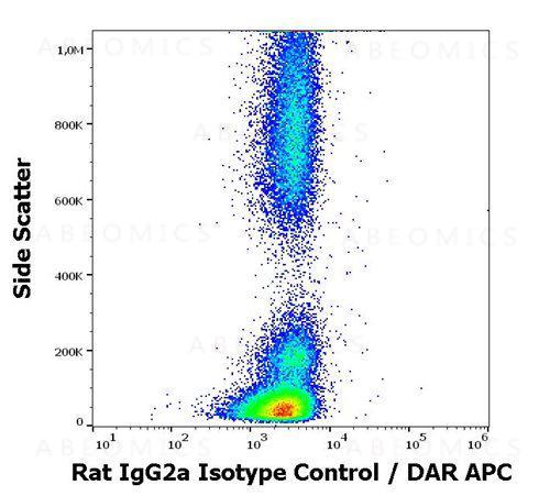 Figure 1 : Flow cytometry surface nonspecific staining pattern of human peripheral whole blood stained using rat IgG2a Isotype control (RTG2A1-1) purified antibody (concentration in sample 3 µg/ml, DAR APC).