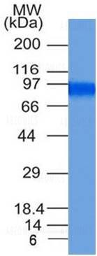 Figure 1 : SDS-PAGE analysis of purified Recombinant Human ACE2 His Tag Protein. 2 µg protein was run on a 4-20% SDS-PAGE gel followed by Coomassie blue staining.