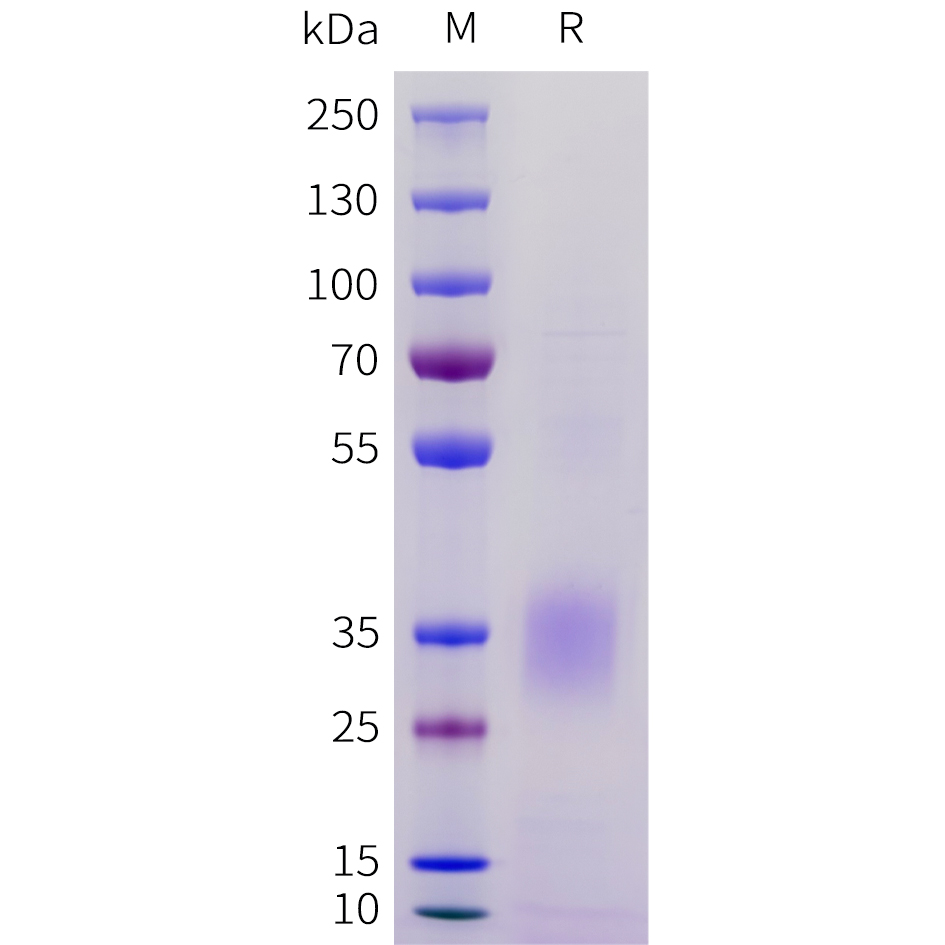 | Purification : | The purity of the protein is greater than 85% as determined by SDS-PAGE and Coomassie blue staining. |