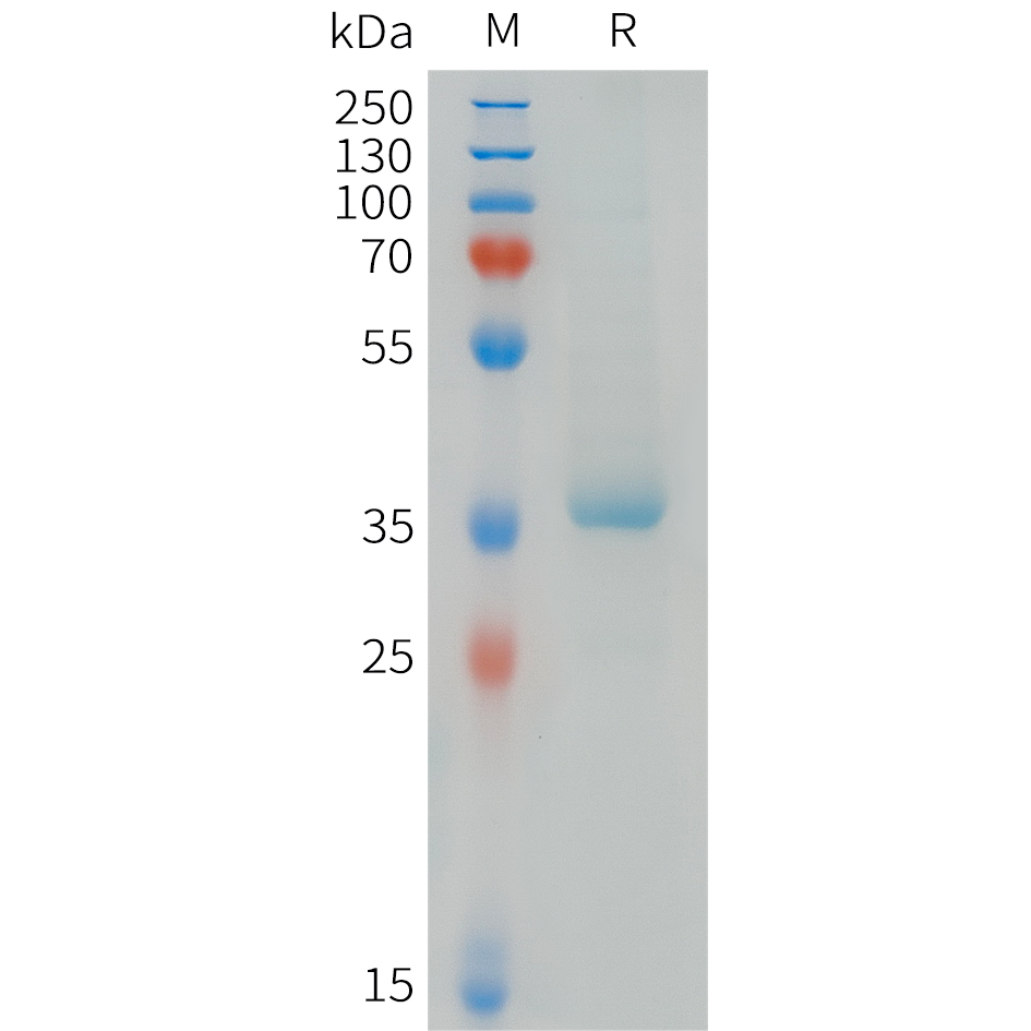 | Purification : | The purity of the protein is greater than 95% as determined by SDS-PAGE and Coomassie blue staining. |