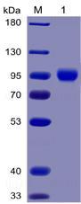 Figure 1. Human CD155 Protein, mFc-His Tag on SDS-PAGE under reducing condition.