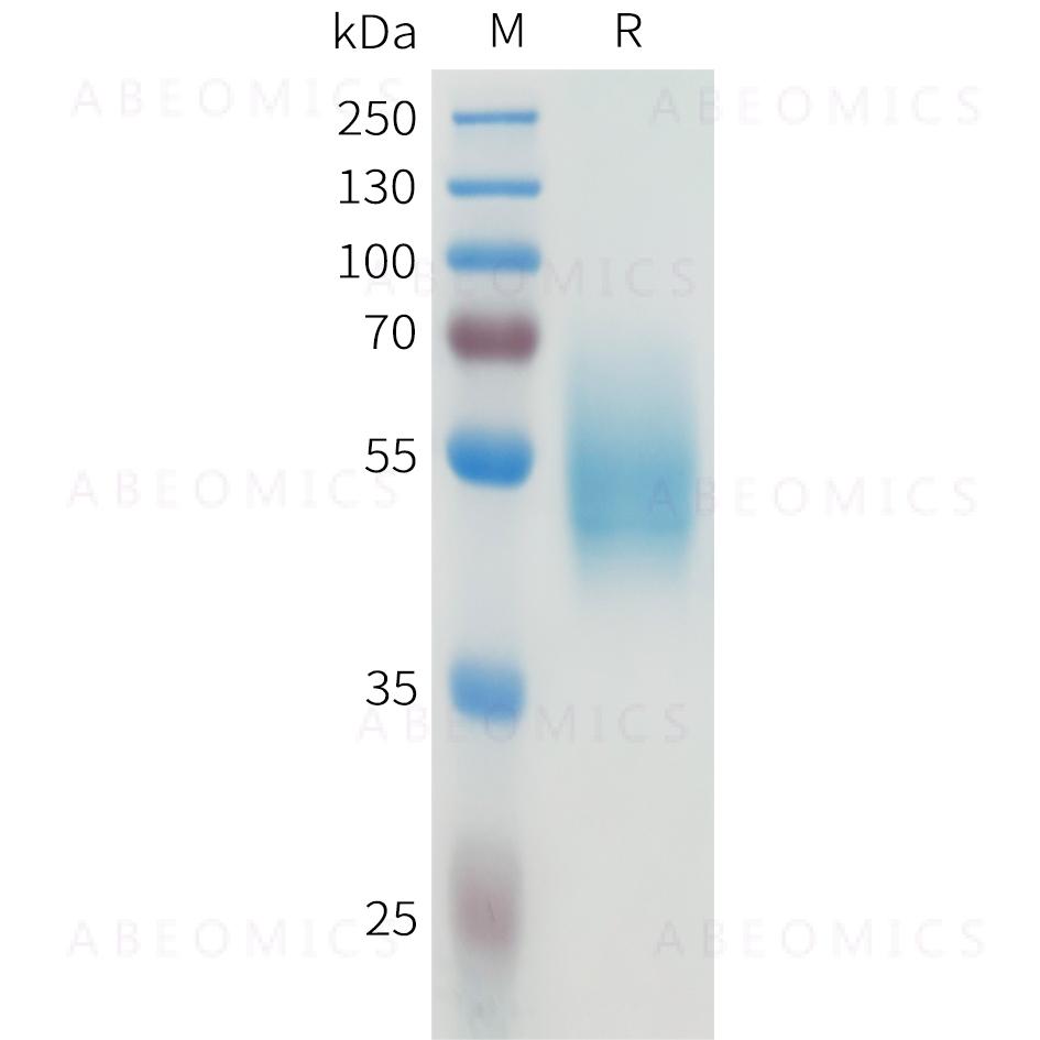 Figure 1. Human CEACAM5(496-592) Protein, hFc Tag on SDS-PAGE under reducing condition.