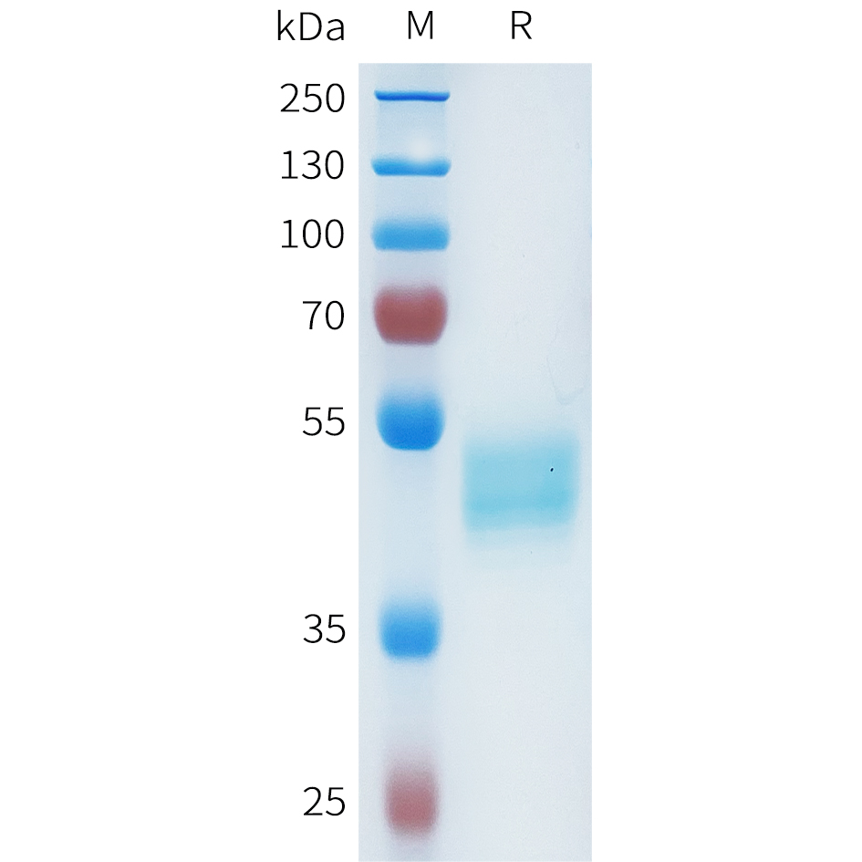 Molecular Weight :The protein has a predicted molecular mass of 38.3 kDa after removal of the signal peptide. The apparent molecular mass of CEACAM6(35-144)-hFc is approximately 35-55 kDa due to glycosylation.