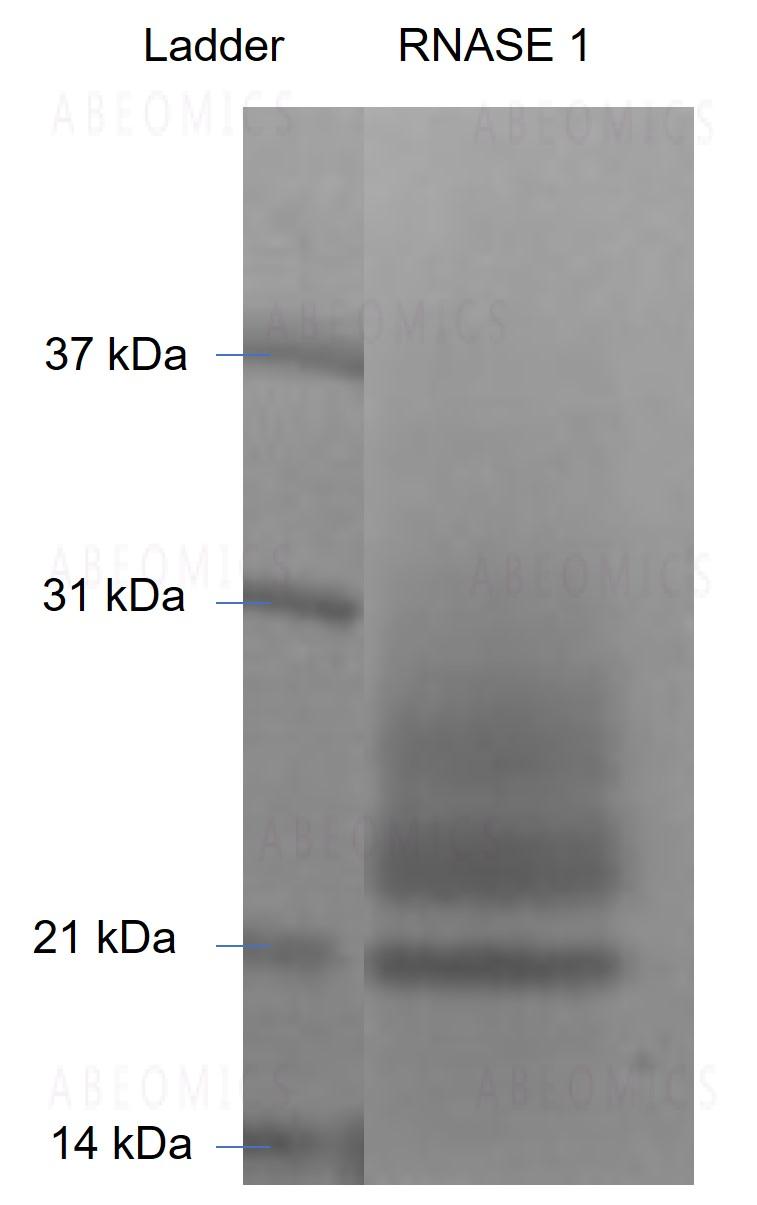Figure: Coomassie gel staining. RNASE1 (10 ug) was loaded in 4-20% SDS Page gel in reducing condition.