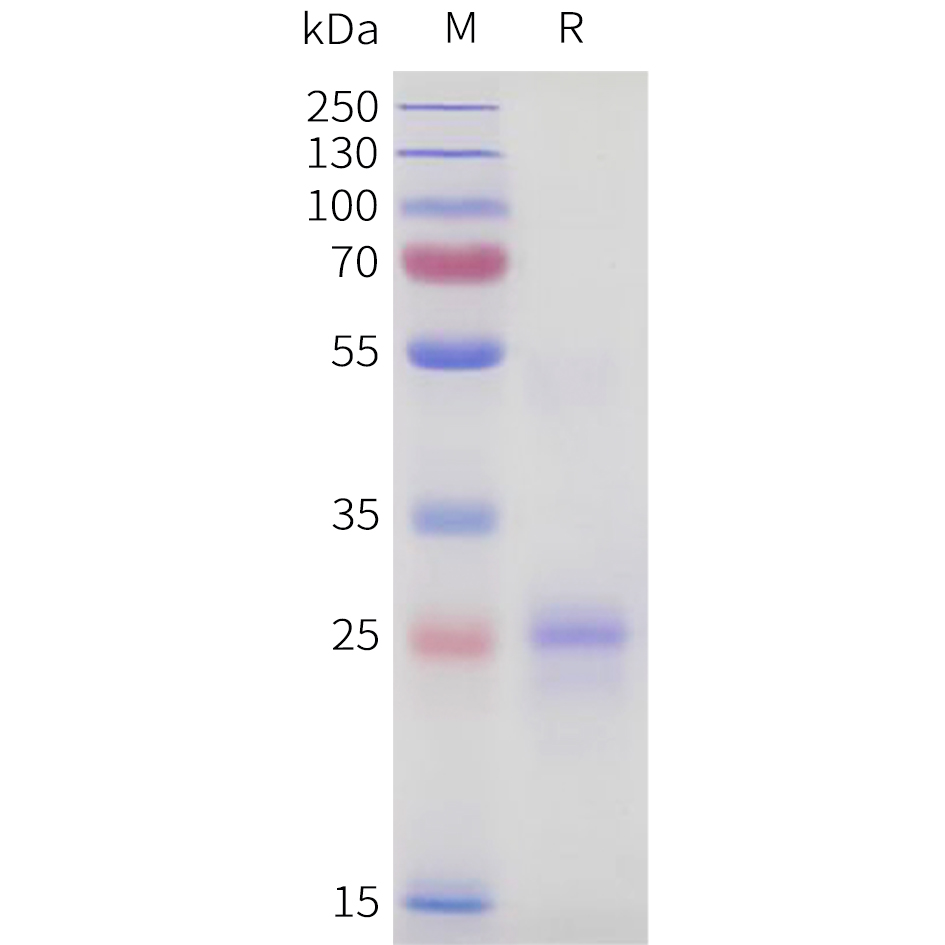 | Purification : | The purity of the protein is greater than 85% as determined by SDS-PAGE and Coomassie blue staining. |