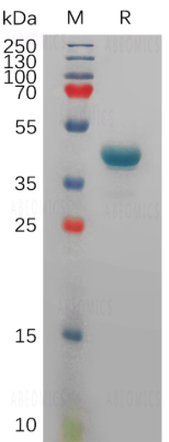 Molecular weight: The protein has a predicted molecular mass of 37.1 kDa after removal of the signal peptide.The apparent molecular mass of hFc-TSPAN8 is approximately 40-55 kDa due to glycosylation.