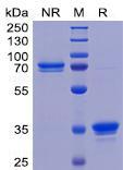 Figure 1. Human TweakR Protein, mFc Tag on SDS-PAGE under non-reducing(NR) and reducing(R) conditions.
