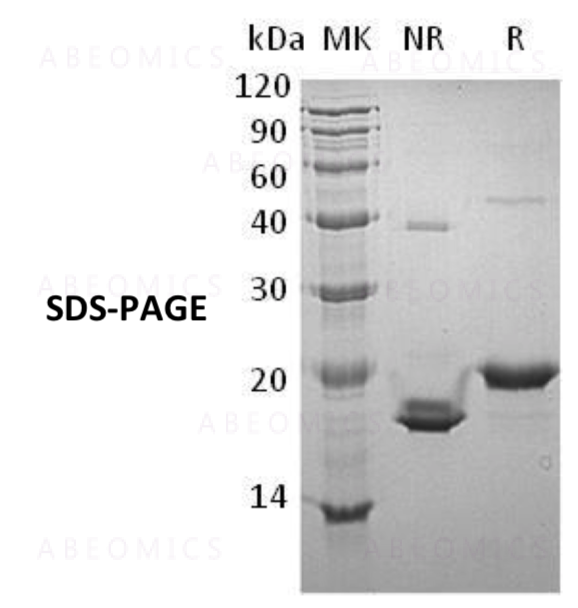 Storage condition : | Lyophilized protein should be stored at < -20°C, though stable at room temperature for 3 weeks. Reconstituted protein solution can be stored at 4-7°C for 2-7 days. Aliquots of reconstituted samples are stable at < -20°C for 3 months. |