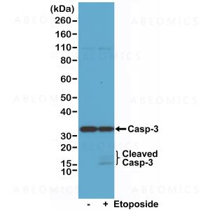 Figure 1: Western Blot of Jurkat cell lysate, untreated or treated with etoposide, using Anti-Caspase-3 Clone: RM250 at a 1:1000 dilution.