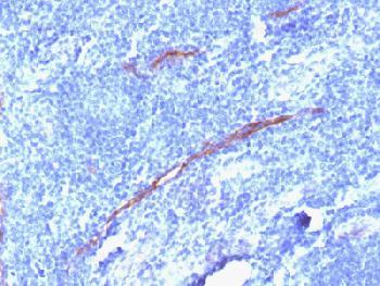 Figure 1: Formalin-fixed, paraffin-embedded human Tonsil stained with CD34 Rabbit Recombinant Monoclonal Antibody (HPCA1/1806R).