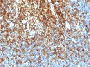 Figure 1: Formalin-fixed, paraffin-embedded human Tonsil stained with CD43 Rabbit Recombinant Monoclonal Antibody (SPN/1766R).